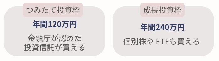 NISAにはつみたて投資枠と成長投資枠の2通りの購入方法があるよ!