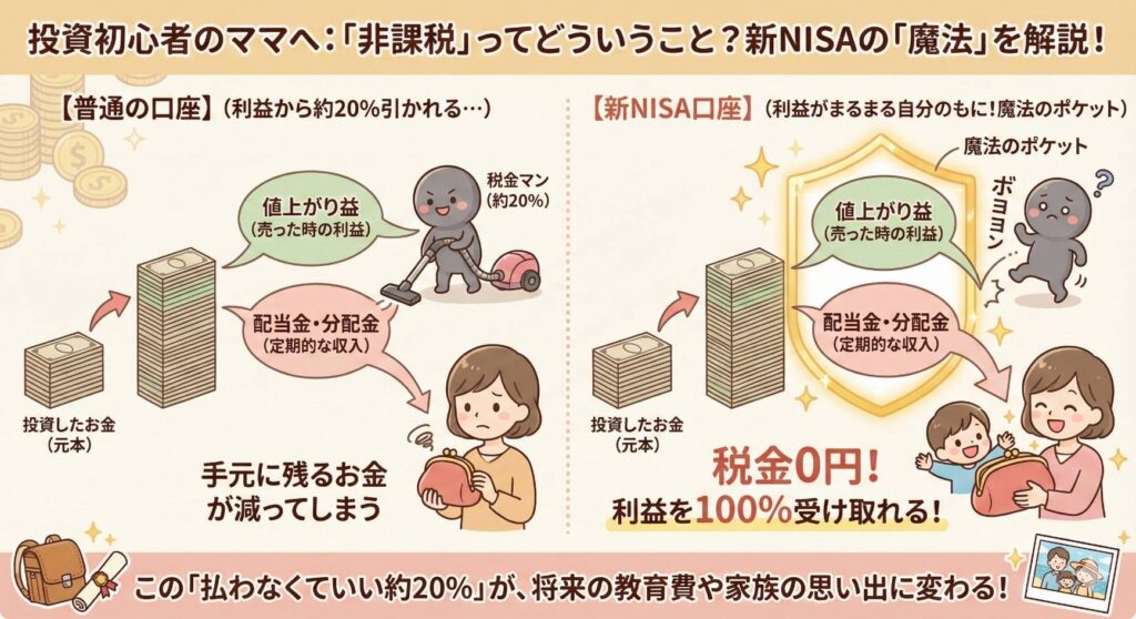 投資で得た利益や配当金が非課税になる制度になるよ!